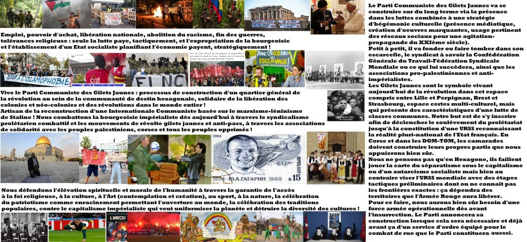 Nous appelons donc en tant que Sartan Roujo, à l’organisation de rencontres entre le Parti Communiste Cubain, le Parti du Travail de Corée, le Parti Communiste des Philippines, le Front Populaire de Libération de la Palestine, le Parti Irlandais Républicain Socialiste (IRSP), l’Armée de Libération Nationale (ELN) de Colombie, les dissidences des FARC qui ont relancé la guerilla, le KKE, le PCRV, les Partis communistes d’Inde (marxiste et maoïste), le Parti Communiste maoïste du Népal de Biplav et d’autres partis communistes authentiques de chacun de ces courants sur des bases concrètes (nous pensons notamment à des partis conséquents d’Amérique latine qui ont fait preuve de leur léninisme comme le PC du Vénézuela ou le PC du Mexique mais aussi des organisations communistes turques comme le TKP ou le DHKP-C qui refusent le rojavisme, le PC maoïste d’Afghanistan ou encore le Parti Tudeh en Iran), afin de discuter entre réels partis communistes d’avant-garde aux positions authentiquement anti-impérialistes et construisant les conditions du soulèvement prolétarien. Ainsi pourrait être posées les conditions pour la fondation d’une Nouvelle Internationale Communiste sur la base du marxisme-léninisme tel que décrit dans les Principes du Léninisme (1924) de Staline, guide pour l’action et non dogme sclérosé, et dans l’œuvre théorique et pratique du Komintern puis du Kominform, la constitution soviétique de 1936 constituant une inspiration sur le plan juridique pour fonder les futurs États socialistes ou pour réformer les États qui s’en revendiquent actuellement.